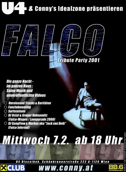 - Die Falco Gedenknacht 2001 nimmt Gestalt an!! Also nicht vergessen, Anfang Februar Zeit freizuhalten: