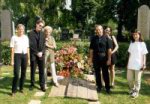 Meeting am 21.08.99Hallo Freunde. Erst mal muß ich sagen das dieses Treffen der absolute ULTRA HIT war!! Obwohl nur Stefan, Margit, Tobi, Kate, Arno, Tina daran teilgenommenhaben. Und ich werde Euch sagen wieso - na so bis ungefähr 14,30 standen wir so am Grab rum,und sprachen über die verschiedensten Dinge, als plötzlich SIE kam ... wer ... Maria Hölzel. Ich ging auf sie zu begrüßte sie, stellte mich und die anderen vor, und schon entwickelte sich das tollste Gespräch. Sie hat bereitwillig auf alle unsere Fragen geantwortet. Wer kann schon sagen, dass er mit Maria Hölzer frisches Wasser für die Blumen am Grab geholt hat *g*. Wir machten auch Photos, die bald auf meiner HP zu sehen sein werden. Na und das beste kommt nun ... da das "neue" Grab am 04.09. feierlich "eröffnet " wird, bekamen wir von Maria eine Einladung für die anschließende Feier ... (In kleinen Rahmen.) Lechtzzzzzz ... Und das schärfste kommt nun: ich fragte sie,ob sie nicht Lust hätte, uns in das nahe Gasthaus zu einen gemütlichen Umtrunk einzuladen ... UND SIE HATTE ...!!! Wir also los mit der Maria im Schlepptau ... Dazu muß ich noch sagen, dass die Damen der Runde eher schweigsam waren, also das Gewicht der Unterhaltung an Tobi und mir lag ... *LOL*. Was wie aber mir Bravour meisterten ... Also langer Rede kurzer Sinn ... Nach sehr viel Mineralwasser, Kaffee, Wiener Schnitzeln, Debreziner Würstchen und noch mehr guter Unterhaltung ging es mit so manchen "Schmankerl" aus Hans wilder Zeit, seinen nicht-Kindern, seinen ehemaligen Frauen, und vor allen der wirklichen Beziehung zu seinem Vater weiter. Auch Sachen über neue Projekte - neues Album, Musical, Film (Hi Panta) etc. etc., hat sie uns erzählt ... Schliesslich fuhren wir mit Maria um ca. 21,00 Uhr in der U-Bahn Richtung Schottenfeldstrasse, man stelle sich das mal vor ... (Wir alle zusammen, mit der Mutter unseres Idols.) Zum Abschied sagte sie "bis zum 04.September, Hr.Bauer" ... Unfaßbar.....Wenn jemand noch was wissen will ... Mailt mir ... Baba (Lach Tobi.) Arno |
